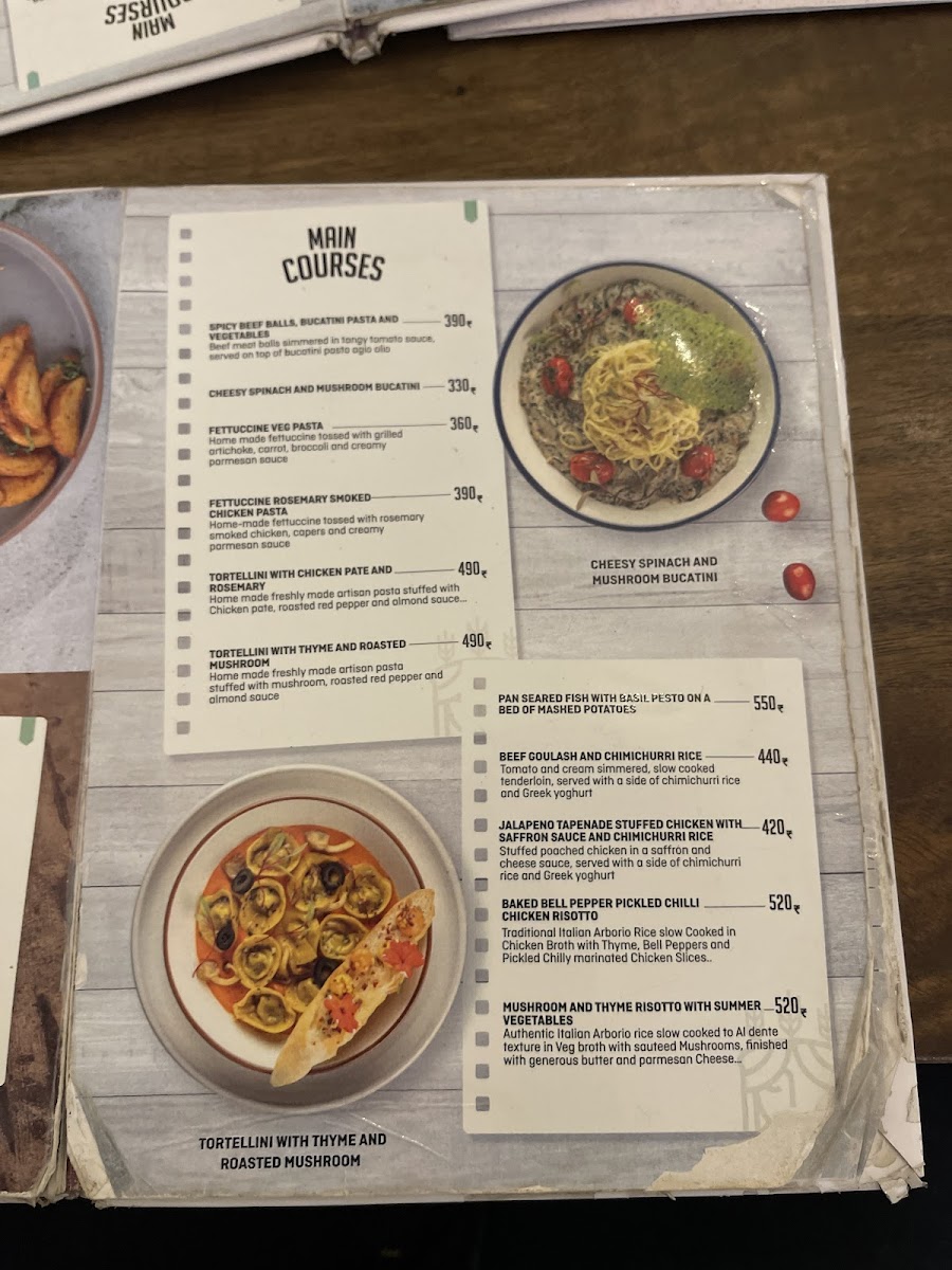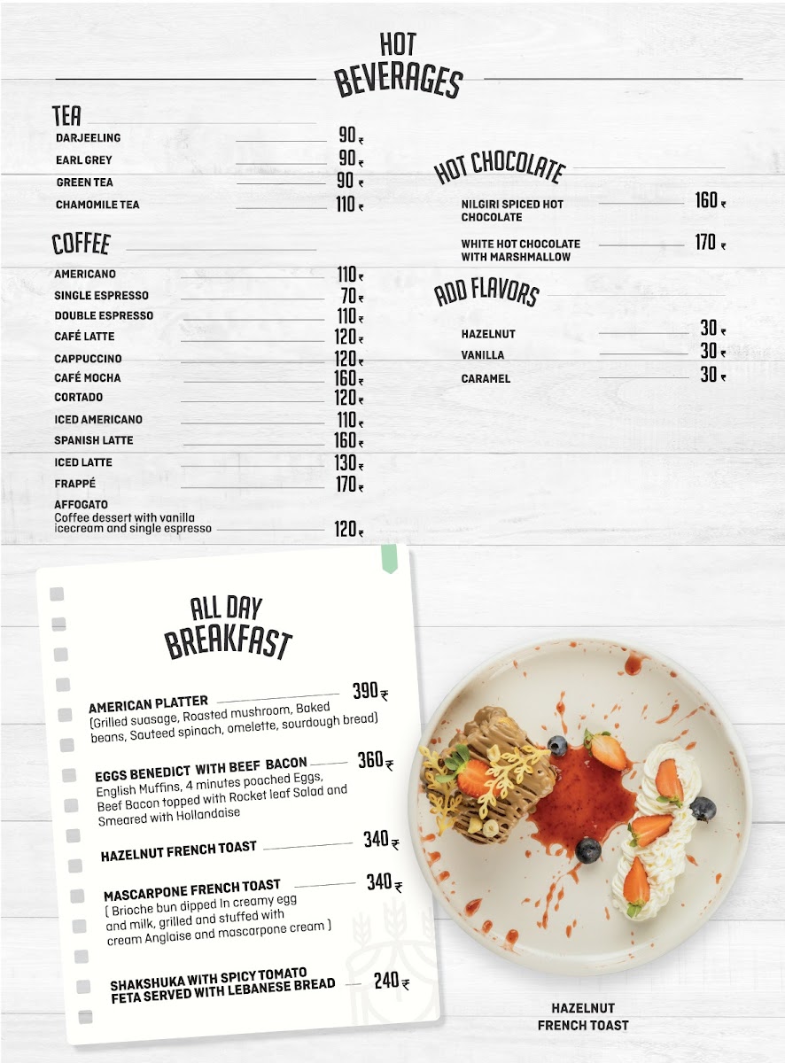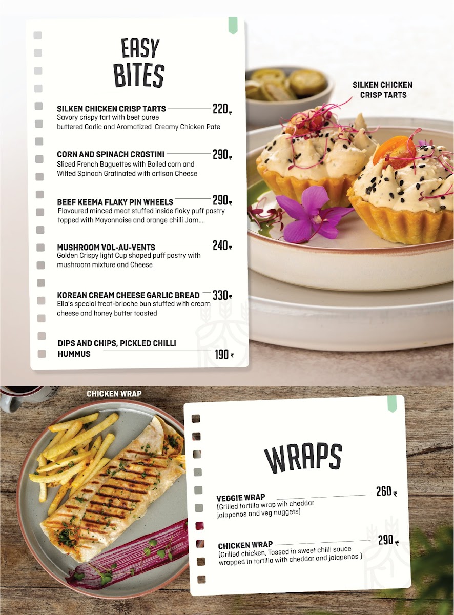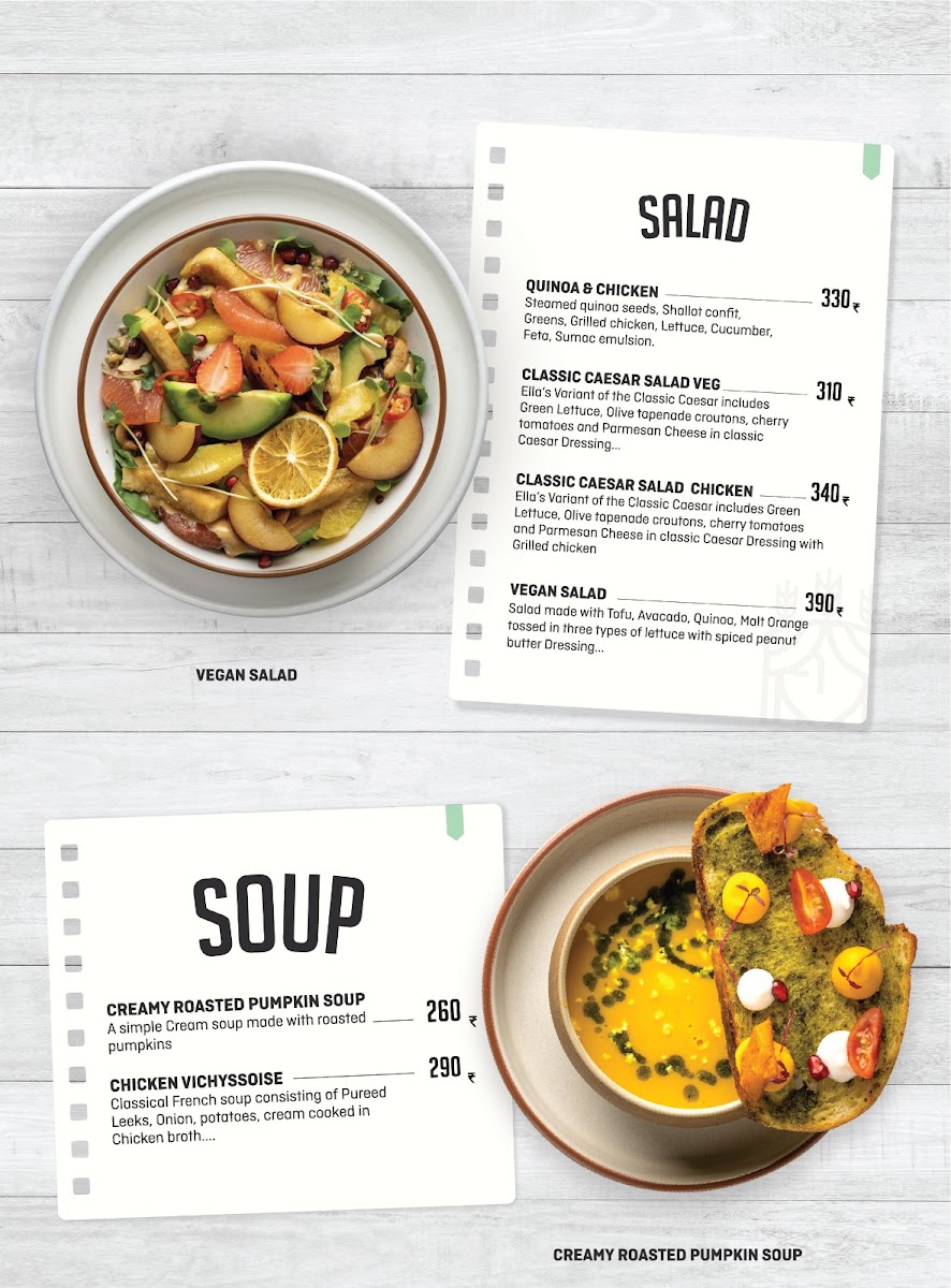 The menu is a delightful fusion of flavors, featuring freshly brewed tea options like Darjeeling and Chamomile, alongside an array of wholesome salads including Quinoa and Chicken and zesty Zoodle salads, both vegetarian and chicken variants available. For our vegan friends, a special vegan salad is also offered.